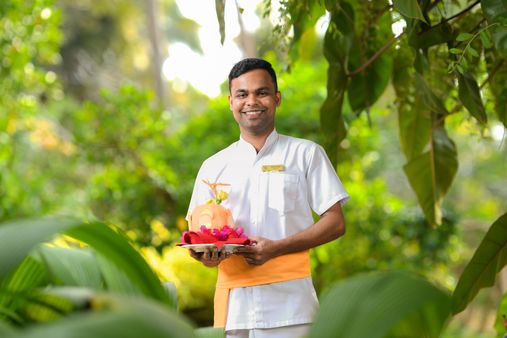 U wordt verwelkomd in een open, liefdevol ingericht Ayurveda restaurant met zeezicht, waar de speciaal op uw constitutietype (Dosha) afgestemde Ayurvedische gerechten vers en individueel worden geserveerd. Soms bepalen subtiele verschillen in de bereiding (zoals met of zonder zout) of het gerecht 'slechts' voeding is of ook medicijn voor u kan zijn. De individuele maaltijdplannen van elke gast worden door de hoofdarts van Ayurveda aan de koks doorgegeven en de correcte uitvoering wordt zorgvuldig bewaakt. Heerlijk fruit, kokosnoten en groenten uit eigen biologische teelt maken vaak uw menu compleet. In de Lotus Villa wordt u uitgenodigd om even de tijd te vergeten en letterlijk geen horloge te dragen. Zo wordt u voor de maaltijden met een bel (en voor de behandelingen persoonlijk) opgeroepen - een vreugdevol spektakel.