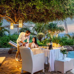 Vijf exclusieve villa's (ca. 150-200 m²) met open bad, privézwembad met zeezicht, bureau, inloopkast, kitchenette, kluis, wifi, airconditioning, plafondventilator, muskietennet, terras. Ocean View Villas met infinity pool en prachtig uitzicht op de oceaan. Delight Villa met waterval in het infinity pool, ruime badkamer in de tropische tuin en een eigen meditatietuin. Sky Villa met uitzichtterras met prachtig panoramisch uitzicht en romantische badtuin met zwembad. Grotere Sea Villa met ca. 14 m infinity pool en ruime buitenruimte.