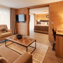 38 gezellige kamers en suites verdeeld over drie chalets, die ondergronds met elkaar verbonden zijn. Alle kamers en suites hebben bergzicht en een balkon.